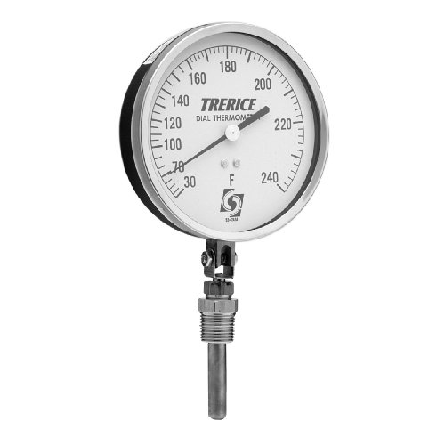 Trerice V80445065B31 Direct Mounted Dial Thermometer, Vapor Actuated, 4.5" aluminum adjustable angle case, 0-160˚F, 2" copper bulb