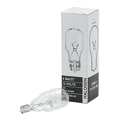 Part Number:T5-12V-4W(12) Item Weight:0.32 ounces Product Dimensions:1.3 x 0.6 x 0.6 inches Item model number:T5-12V-4W(12) Color:Clear Shape:T5 Voltage:12 volts Wattage:4 Item Package Quantity:1 Number Of Pieces:12 Type of Bulb:Incandescent Luminous Flux:45 Usage:Indoor use Batteries Required?:No Warranty Description:30 day warranty. Shipping Weight:0.32 ounces (View shipping rates and policies)