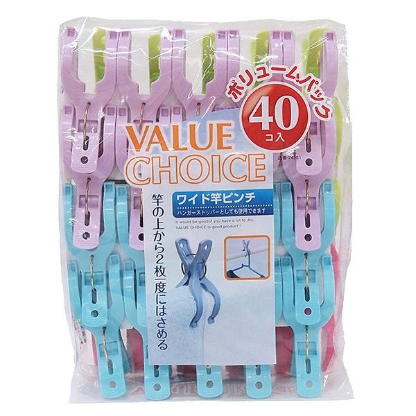 ピンチの先端が二股になっているので、2つの洗濯物を一度にはさめます。竿に掛けたハンガーの上からはさめるので、風などによるハンガーの移動を防ぎます。 |