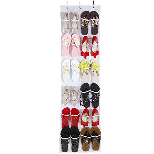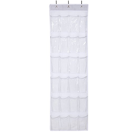 Description: The hanging organizer is constructed of clear PVC material and nonwoven fabric to provide maximum strength and durability. The space-saving organizer utilizes vertical storage space to keep your room clean and clutter-free. It features 24 pockets and is perfect for storing belts, scarves, towels, umbrellas, keys, toys, tools, and shoes. The clear pocket design makes finding and accessing the stored items a breeze. The hanging organizer can be easily hung over closet doors or any interior doors up to 1.6"-1.7" in thickness.