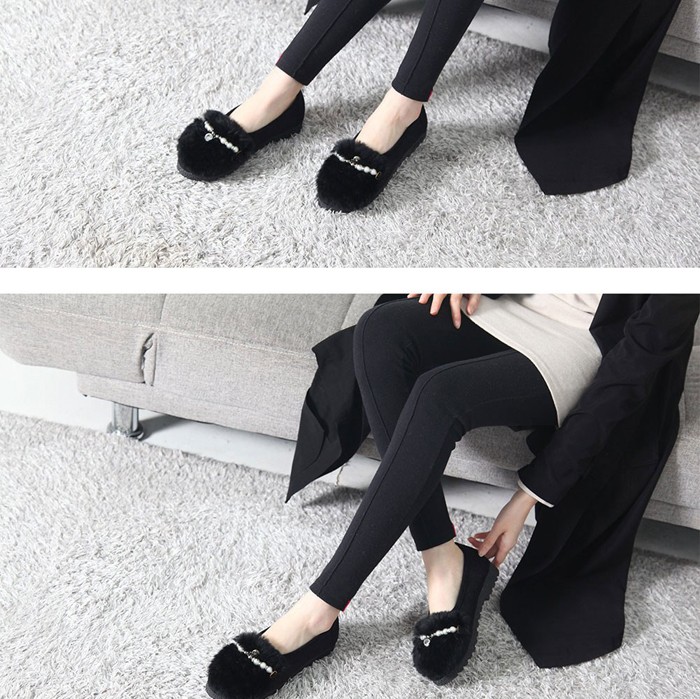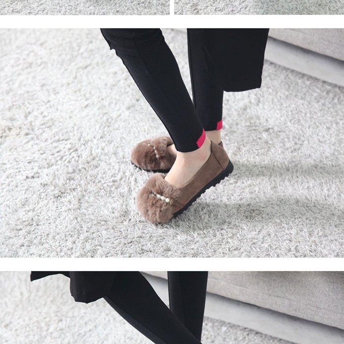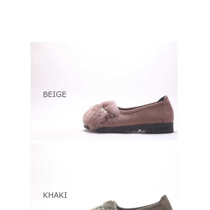 商品名:フラットシューズ レディース スエード調 フェイクファー 2017 秋冬 ファッション 靴 婦人靴
