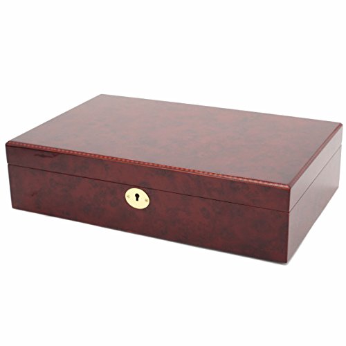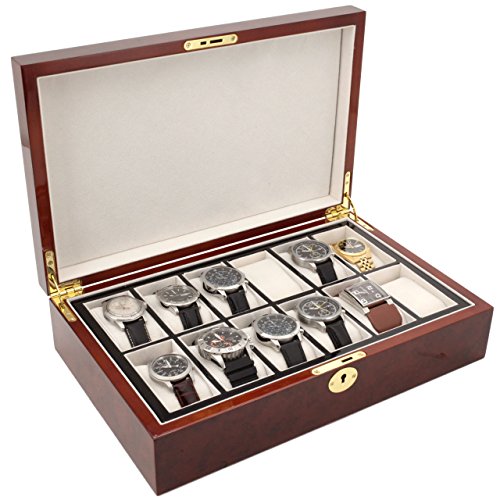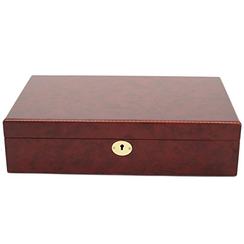 Beautiful Watch Box for 12 Watches - Burlwood Finish with Inlay Design - Removable Tray