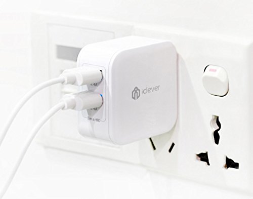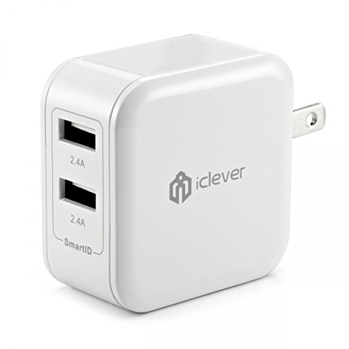 - Title : [Most Powerful] iClever® 4.8A 24W Dual USB Ports Travel Wall Charger with SmartID Technology, Foldable AC Plug for Apple iPhone 6 Plus, 6, 5S, 5C, 5, 4S; Samsung Galaxy S5, S4, S3, Note 3, 2; iPad 5, 4, 3, 2, Air, Mini; iPod Touch, nano; HTC One X V S; LG G2, Optimus F3; Nexus 5, 6, 7, 9, 10; Motorola Droid RAZR MAXX; Blackberry; PSP, PS4 Controller; Bluetooth Speaker/Headset; External Battery Power Bank and More - White
