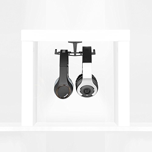 -. Feature : All metal dual under the desk headphone hanger that can hold small to large headphones without bending or breaking. / Remove the clutter off your desk, headphones are easily stored under your desk on the stylish Truss. / Holds securly under your desk surface using strong 3M VBH tape. / Unique and stylish, will look good in any setting be it at home, work, school or cyber café. / Smaller than a headphone stand, sturdier than most other comparable desk headphone hangers or stands..