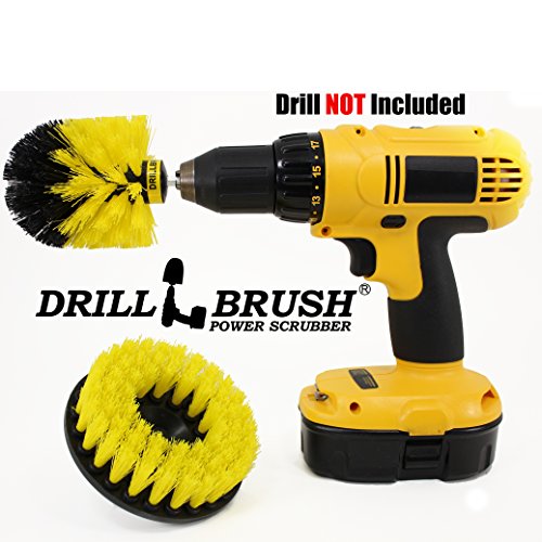 -. Feature : Drill Brush Combo Brush kit works great on Fiberglass Tubs, Shower Stalls, Sinks, and all Bathroom Tile / Both brush shafts will fit drills with the common 3/8 inch drill chuck or a larger 1/2 chuck / Durable nylon bristles. Medium stiffness for general purpose scrubbing / These brushes also work great on baseboards, flooring and Kitchen surfaces / Guaranteed quality and super fast, same day shipping. DRILL NOT INCUDED!