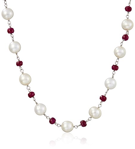 -. Title : Sterling Silver 8-9mm White Cultured Freshwater Pearl and 4-5mm Link Strand Necklace, 18"