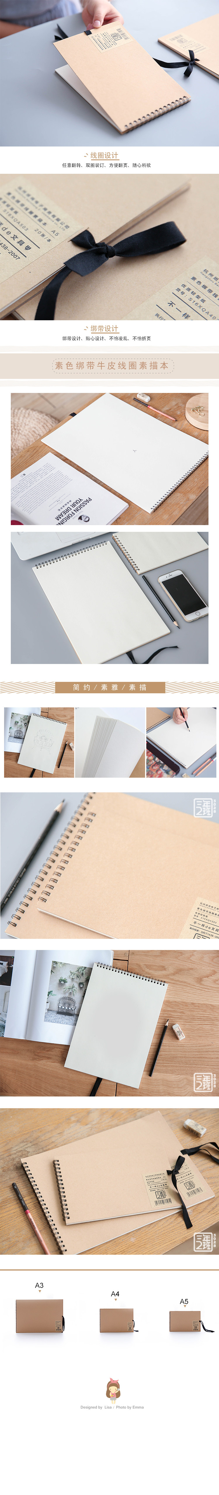 素色绑带牛皮素描本线圈本 速写本学生绘画本图画本子