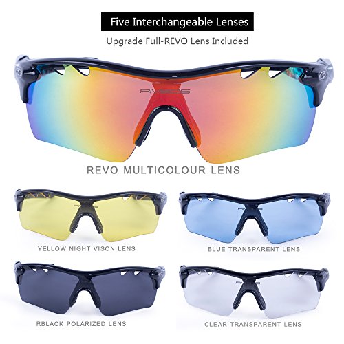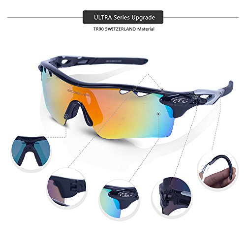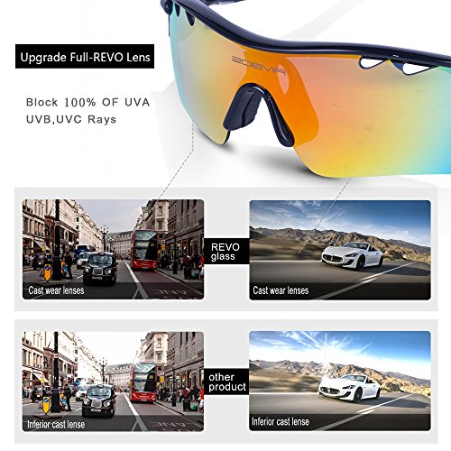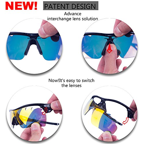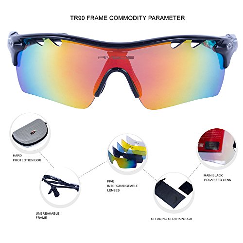 5 Shatterproof Lens:The Main Black lens is Polarized Lenses Against Strong Sunlight, the Other 4 Lens are Colored Sunglasses for Different Environmental Condition