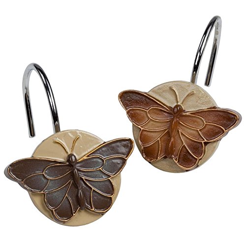DS BATH Bora Bora Shower Hooks,Decorative Hooks for Bathroom Curtains,Butterfly Shower Hooks,set of 12