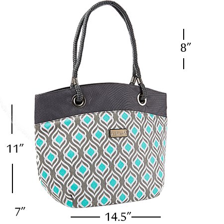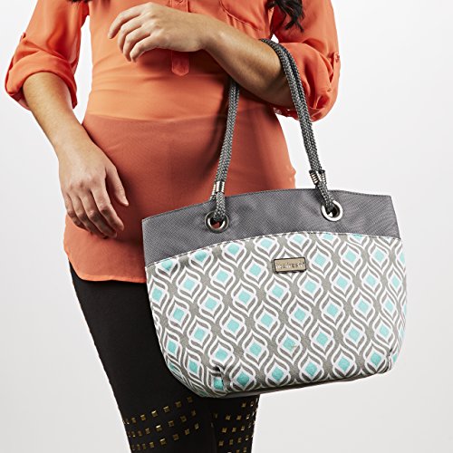 Fit and Fresh-Signature Collection Ladies' Brisbane Insulated Tote - Grey Aqua Leaf Drop