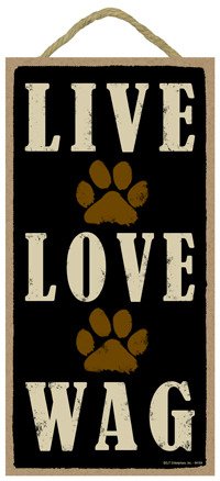 (SJT94164) Live Love Wag (Paw Prints) 5" x 10" wood sign plaque