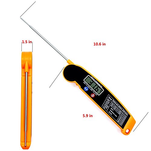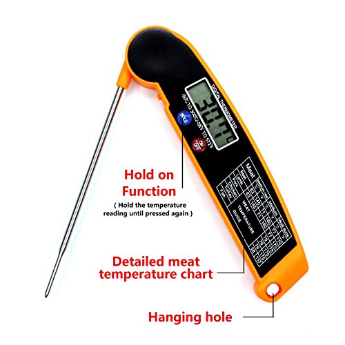 Digital Thermometer Electronic Food / Cooking Thermometer Barbecue Meat Thermometer Kitchen Thermometer – Food-safe Sturdy Steel Meat Thermometer Probe for BBQ, Meat, Candy, Grill, Bath Water(Orange)