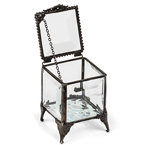 -. Binding : Kitchen -. Brand : J Devlin Glass Art -. Color : clear -. EAN : 0875761000398 -. Feature : Polished Beveled Glass, Filigree Lift, Metal Beaded Trim, Iridescent Glass Bottom / This glass box is perfect to display your jewelry, trinkets and keepsakes / Chain on the inside to support the lid when it is open / Handcrafted stained glass jewelry box made with lead free solder to protect you and the environment / Designed and Manufactured by J Devlin Glass Art 2"x2"x2 1/2" -. IsAutographed : 0 -. Label : J Devlin Glass Art -. Manufacturer : J Devlin Glass Art -. Model : Box 153 -. MPN : Box 153 -. PackageQuantity : 1 -. PartNumber : Box 153 -. ProductGroup : Home -. ProductTypeName : HOME -. Publisher : J Devlin Glass Art -. Studio : J Devlin Glass Art -. Title : J Devlin Box 153 Beveled Glass Keepsake Jewelry Ring Box Gift 2 x 2 x 2 1/4 -. UPC : 875761000398