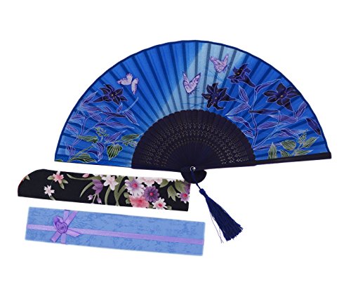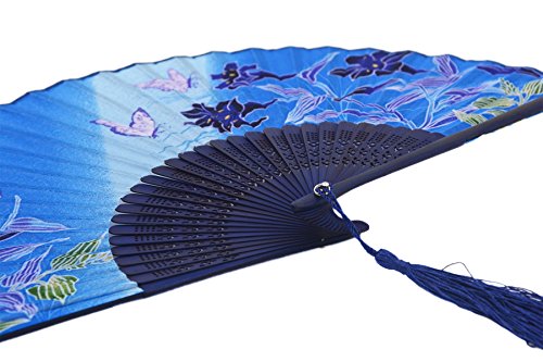 Amajiji 8.27" Chinese /Japanese Vintage Retro Style Bamboo Wood Silk Folding Hand Fan for women NQE LH (NQE-02)