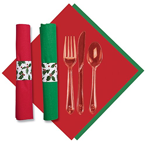 -. Title : Hoffmaster 119995 Holly CaterWrap, Pre-Rolled Red/Jade 2-Ply Dinner Napkins and Heavy Weight Clear Cutlery (2 Bags of 50)