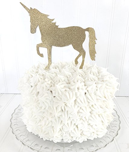 - Your cake will become the magical centerpiece of your party adorned with this glittered unicorn topper.