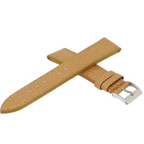 -. Feature : 18mm Watch Band Genuine Leather Gold With Stitching Mens Strap with Built-in SP.R.Ing Bars / Band is Calfskin Leather Strap, Stitching Around Band, slightly thick band / Band Length: 3.50" Including Buckle and 4.5" Hole Side / Stainless Steel Polish Finish Buckle Hypoallergenic and Leather Lining