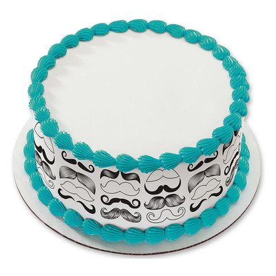 Mustache Birthday Peel & STick Edible Cake Topper Decoration for Cake Borders w. Sparkle Flakes & Favor Labels