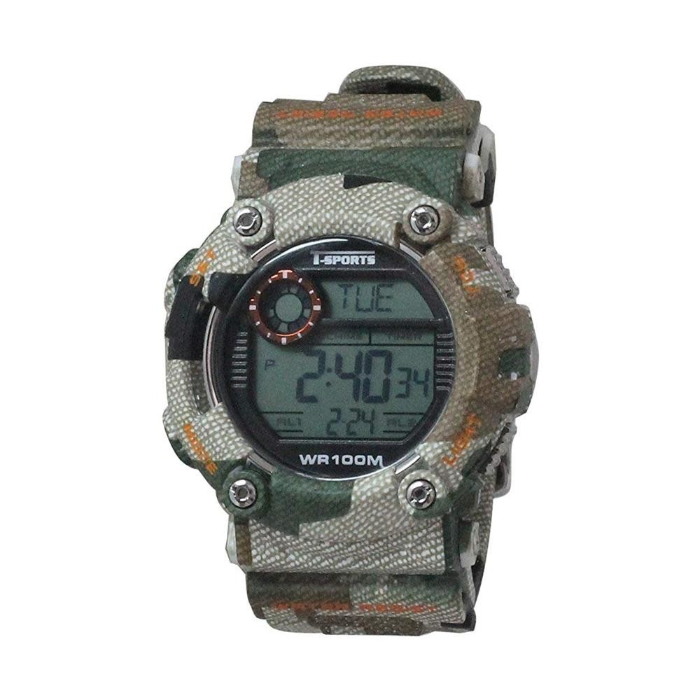 | 迷彩カラーを基調としたデジタル腕時計。 |