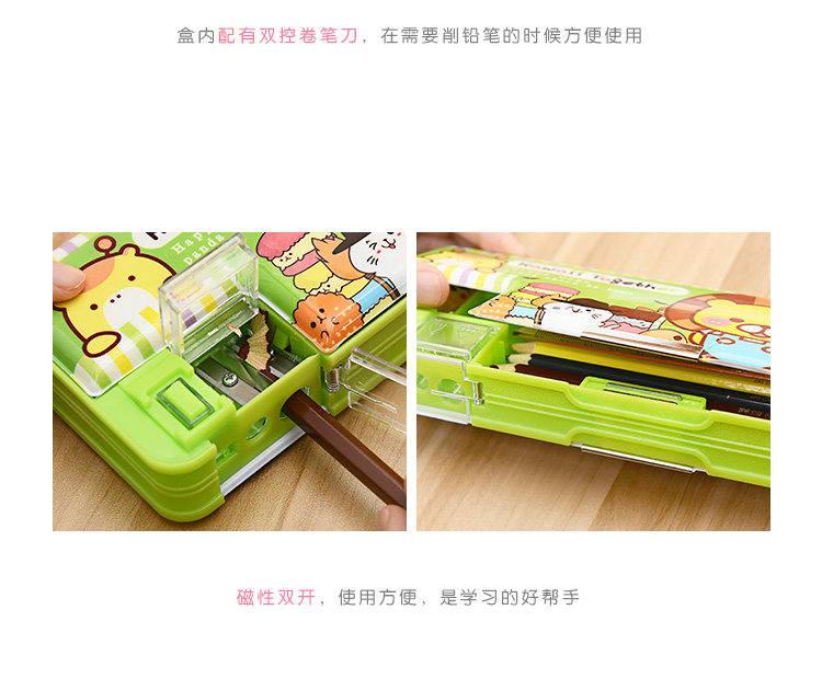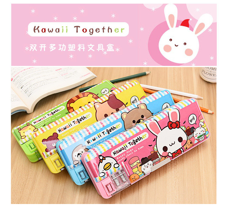 卡通塑料双开文具盒创意卡通可爱多功能铅笔盒大容量学生文具用品