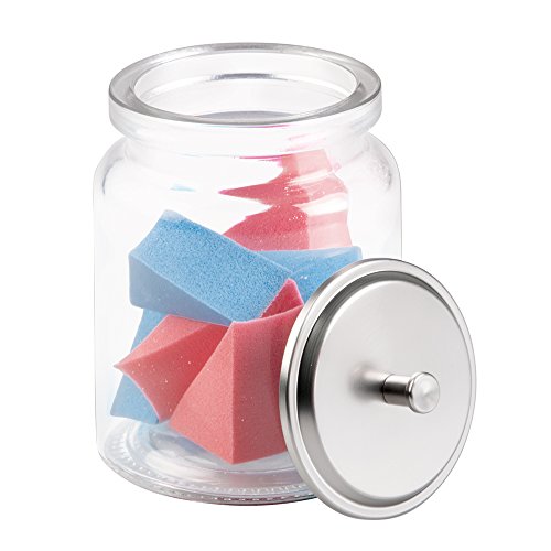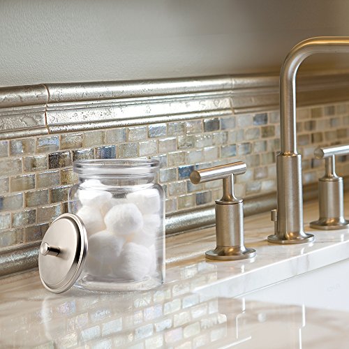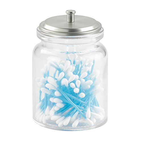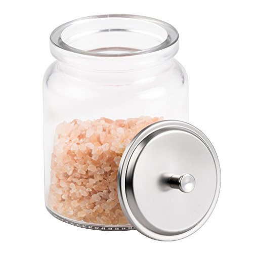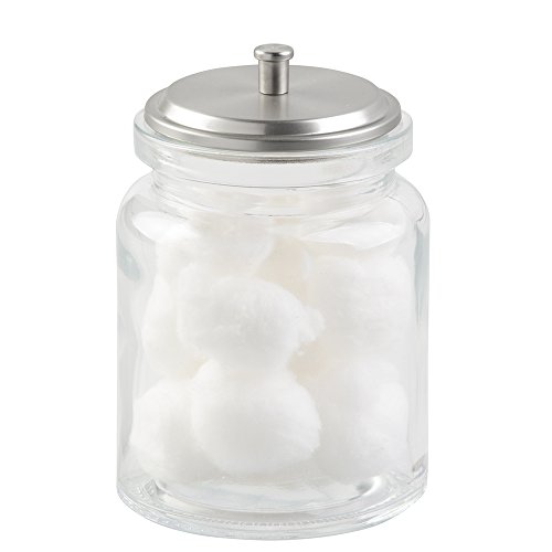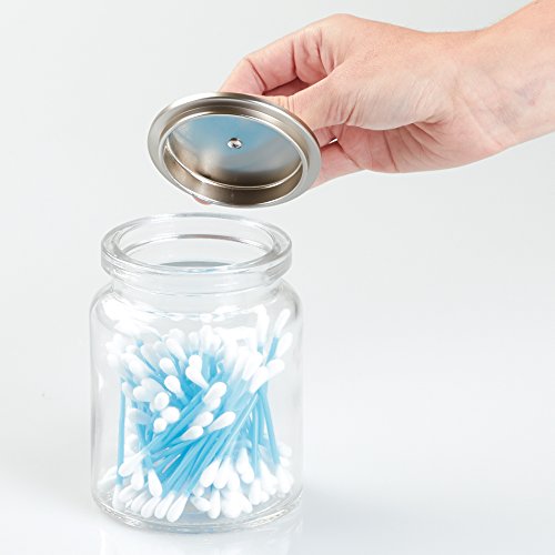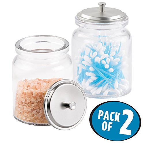 mDesign Bathroom Vanity Glass Storage Organizer Canister Jars for Q tips, Cotton Swabs, Cotton Rounds, Cotton Balls, Makeup Sponges, Bath Salts - Pack of 2, Clear/Brushed