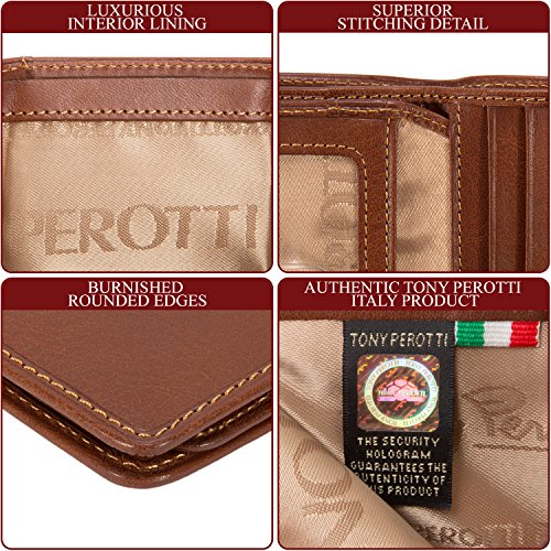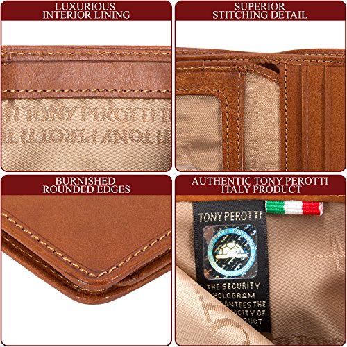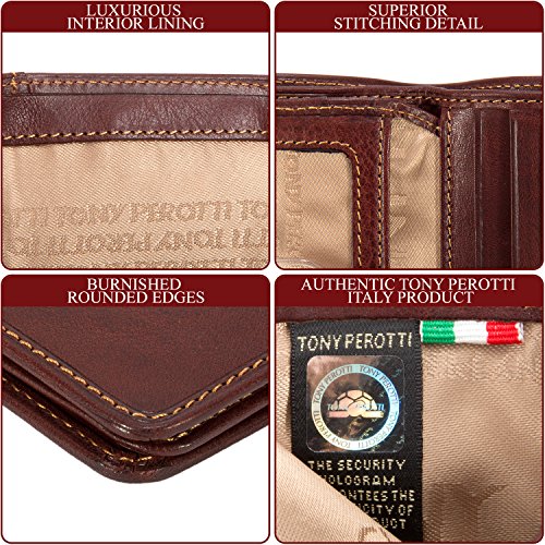 Since 1970 Tony Perotti has been constantly introducing styles that set future trends while maintaining a firm footing in the noblest Italian traditions of leather craft. All of our Tony Perotti products are made from carefully selected genuine Italian full grain hides, tanned in the most recognized expertise and leather craftsmanship based on ancient and noble Italian artisanship. The cool Italian weather prevents any flea or tick irritation to the animals, attributing to the top quality and purity of the leather without any scratches or bites. The tanning process utilizes an eco-friendly approach by using vegetable extracts without the use of toxic or polluting substances. This vegetable tanning process allows the leather to retain its natural look and feel, as well as beautifying and maturing over time to develop a pleasant patina that gives the wallet an antique look as it gets older. It also allows the leather to be easily manageable and maintained, as the vegetable oils and dye can cover any scratches or marks on the leather by rubbing it off with a fine cloth or leather cleaning lotion. We are certain that you will love and appreciate our products. Thank you for being part of this tradition!