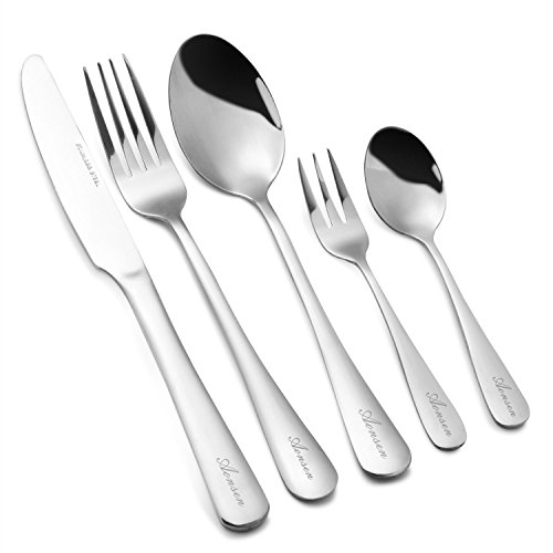 Flatware Sets We promised offer the best customer service, we always glad ti serve you. we're looking forward to seeing you to share alued experience on our store page Tips: stainless steel cutlery set has become our daily necessities,some common sense is shared with everyone here, if you have any points,we will invite you to share a healthier life. 1. Stainless steel cutlery is not long in salt, soy sauce, vinegar, soup.They contain a lot of electrolytes. 2. Stainless steel cutlery can not be baked on fire. 3. Silverware is not in a state of high temperature for a long time. Contain: 20-piece full set Consist of: 4 dinner knives 4 dinner forks 4 dinner spoons 4 salad forks? 4 tea spoons Great gift ideas: Give yourself - give yourself a better taste to enjoy! Provide intimate and upscale gifts to family members - friends or colleagues. 0 |