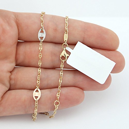 The chain measures 2mm thick, the large links measure 5mm (0.2 in) x 8mm (0.31 in), the anklet is 10 inches long, and weighs 1.9g.