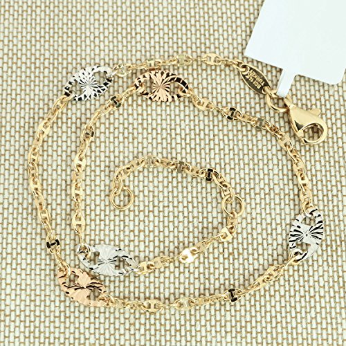 This anklet is made of solid 14k gold (not plated or filled) and stamped "14K." This anklet is a perfect addition to your warm weather wardrobe.