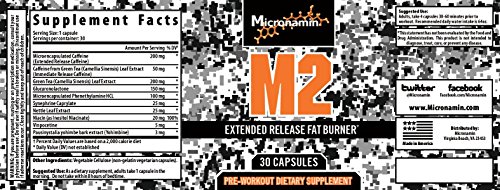 -. Binding : Health and Beauty -. Brand : Micronamin -. EAN : 0600988674806 -. Feature : Fat Burner - Burns excess fat in targeted areas reducing stomach, arms, and legs / Weight Loss Supplement - Appetite suppressant helps avoid unnecessary calories / Natural Energy Pills - Fat burning and increased energy continues throughout the day / Premium Ingredients - Uses only proven ingredients for safe and healthy weight loss / 100 percent satisfaction guaranteed or your money back -. IsAdultProduct : 0 -. Label : Micronamin -. LegalDisclaimer : *The product statements on this page have not been evaluated by the FDA. This product is not intended to diagnose, treat, or cure any disease. Micronamin is the sole manufacturer of this product. The manufacturer's warranty and any applicable guarantees only apply to purchases made directly from Micronamin. The manufacturer's warranty does not apply if purchased from anyone other than Micronamin. -. Manufacturer : Micronamin -. PackageQuantity : 1 -. ProductGroup : Health and Beauty -. ProductTypeName : HEALTH_PERSONAL_CARE -. Publisher : Micronamin -. Studio : Micronamin -. Title : Micronamin Thermogenic Energy Supplement M2 (30 Count) - Best Weight Loss Pills for Men and Women - Top Diet Fat Burner -. UPC : 600988674806