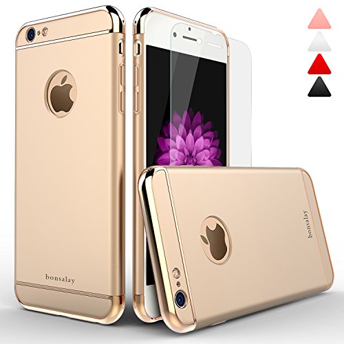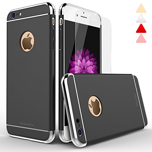 iPhone 6s Case, bonsalay:emoji: 3 in 1 Ultra-Thin and Slim Design Coated Premium Non Slip Surface Shockproof Electroplate Metal Texture & Skin Tempered Glass Screen Protector for Apple iphone 6s