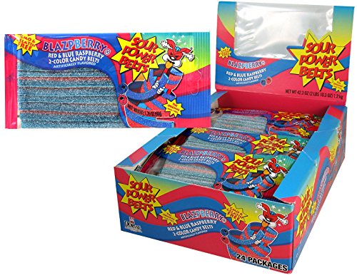 -. Title : Sour Power Belt Candy Packages, Blazpberry Red and Blue Raspberry, 42.3 Ounce