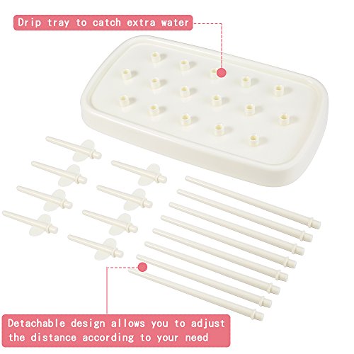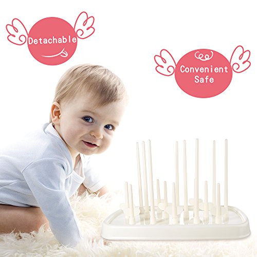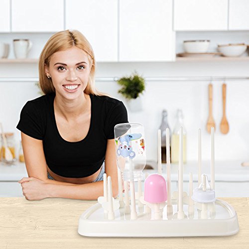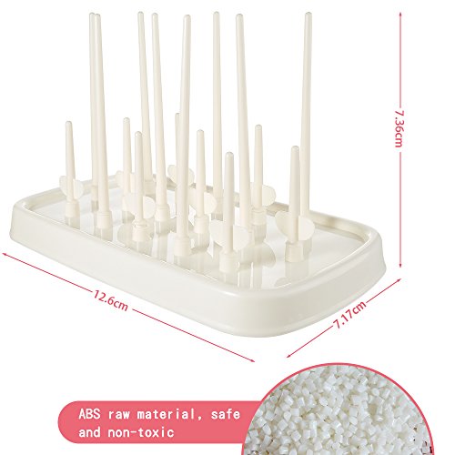 -. Feature : Enlarged capacity design - Holds up to 16 bottles and ideal for use of straws, nipples, pump accessories, pacifiers and more. / Smart Design - The 8 tall sticks go for cups, glass bottles, and the 8 short ones with detachable pegs for smaller items like breast pump parts, pacifiers and nipples. Easily holds items of all shapes and sizes uP.R.Ight for drying while excess water collects in bottom tray / Open Design - Open design allowing air to flow freely and water to easily evaporate for the most quickly hygienic and optimum drying, prevent cross contamination. / Easy to clean Design - Hand wash in warm, soapy water. Dishwasher safe. Rinse thoroughly and air dry. / Lifetime Money-back Satisfaction Guarantee - All Vicsou products come with a lifetime guarantee. If you experience any unsatisfied with our Drying Rack for all the lifetime of the product, contact us and we will refund every penny of your purchase or ship you a new one for free.