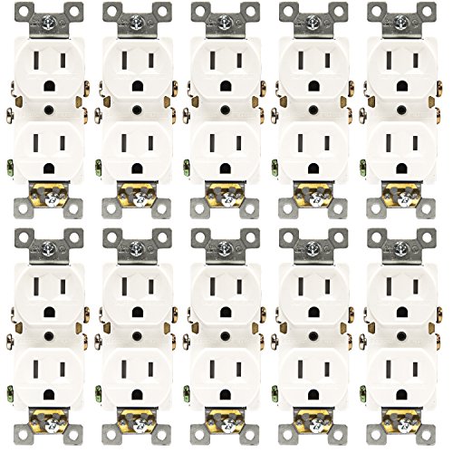 Duplex Receptacle Outlet Enerlites 61580-TR-W Residential Electrical Socket, Tamper Resistant, Self-Grounding, 2-Pole, 15A/125VAC, White - 10 Pack