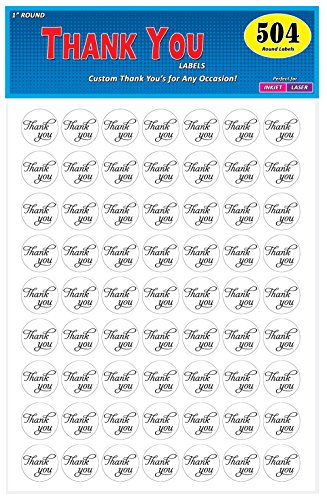 1" Diameter, 504 adhesive labels. Thank you stickers with calligraphy/script printing.