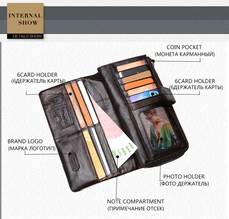 Interior:Photo Holder,Interior Zipper Pocket,Cell Phone Pocket,Zipper Poucht,Coin Pocket,Interior Compartment,Interior Slot Pocket,Note Compartment,Card Holder