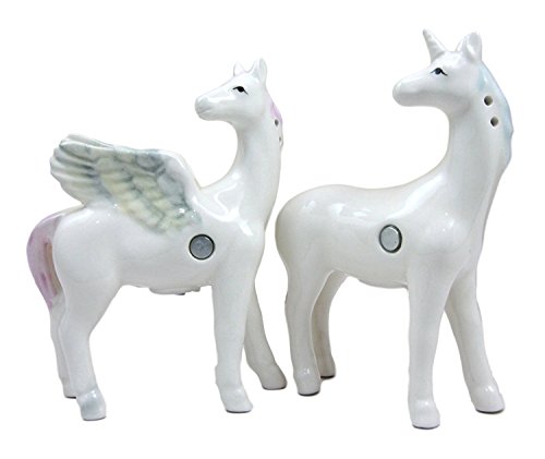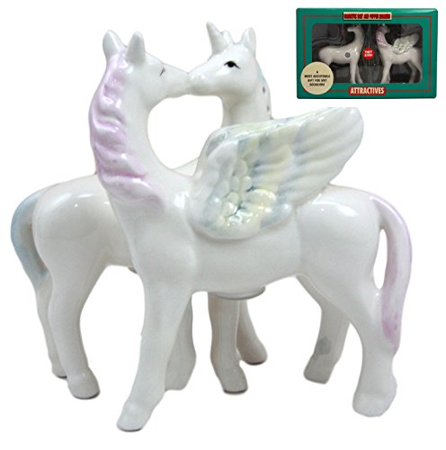 Atlantic Collectibles Rare Horses Unicorn and Pegasus Ceramic Magnetic Salt Pepper Shakers Set Figurines