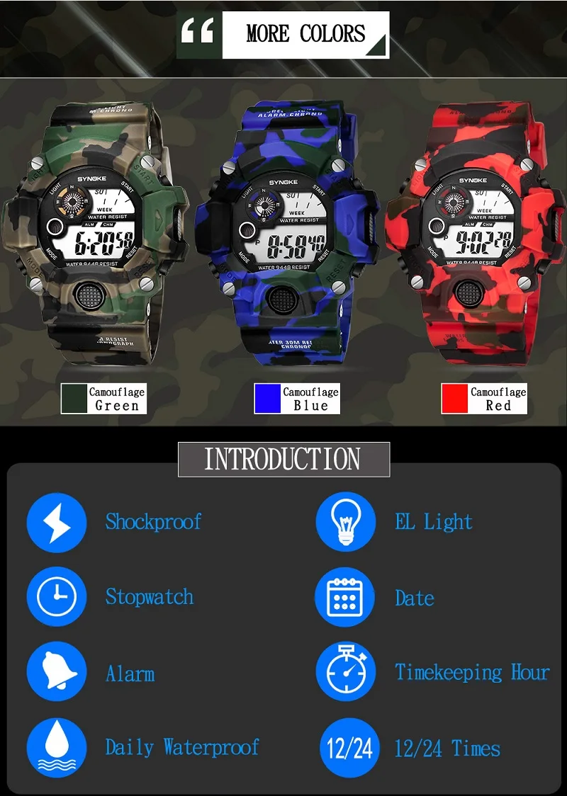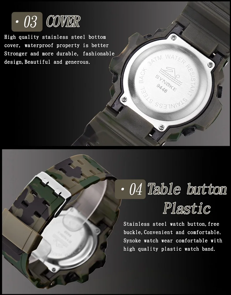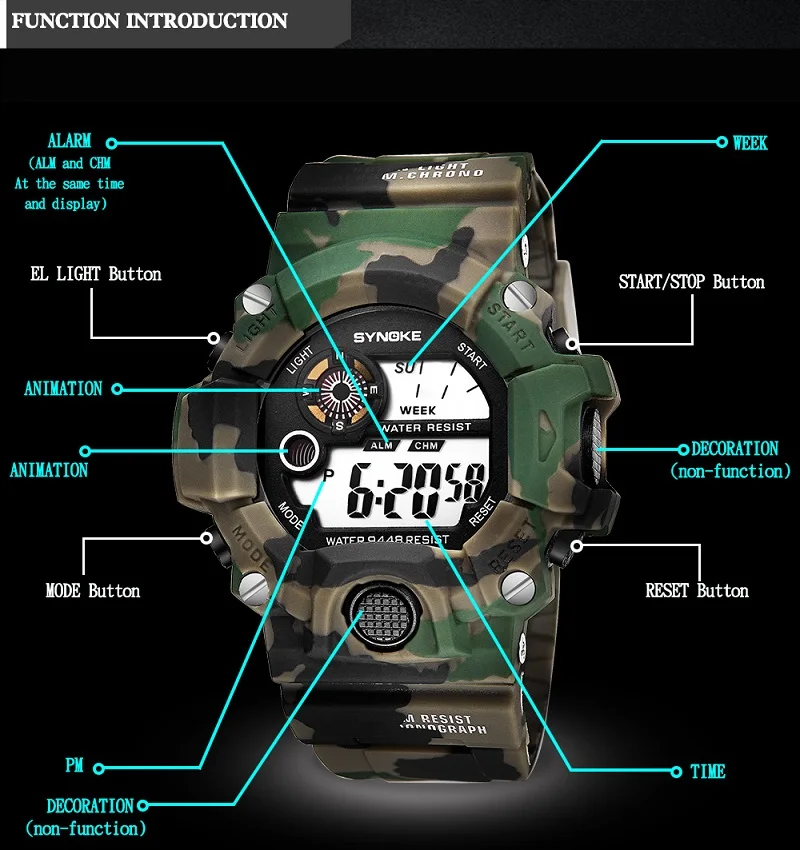Feature:Back Light,Alarm,Water Resistant,Repeater,Stop Watch,Week Display,Auto Date