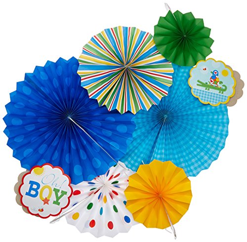 Baby Shower 'Ahoy Baby' Paper Fan Decorations (6pc)