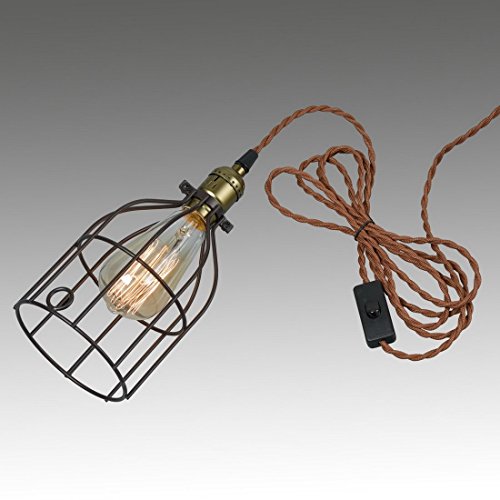 Truelite Industrial Vintage Style Mini Plug--in Pendant Light, Metal Bird Cage Edison Hanging Light with Toggle Switch