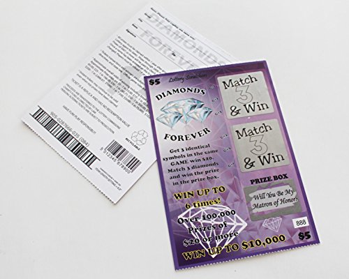 Matron of Honor Proposal Fake Lotto Lottery Replica Scratch Off Card - Each Ticket is a Fake Winner! Prize Box Message says "Will You Be My Matron of...