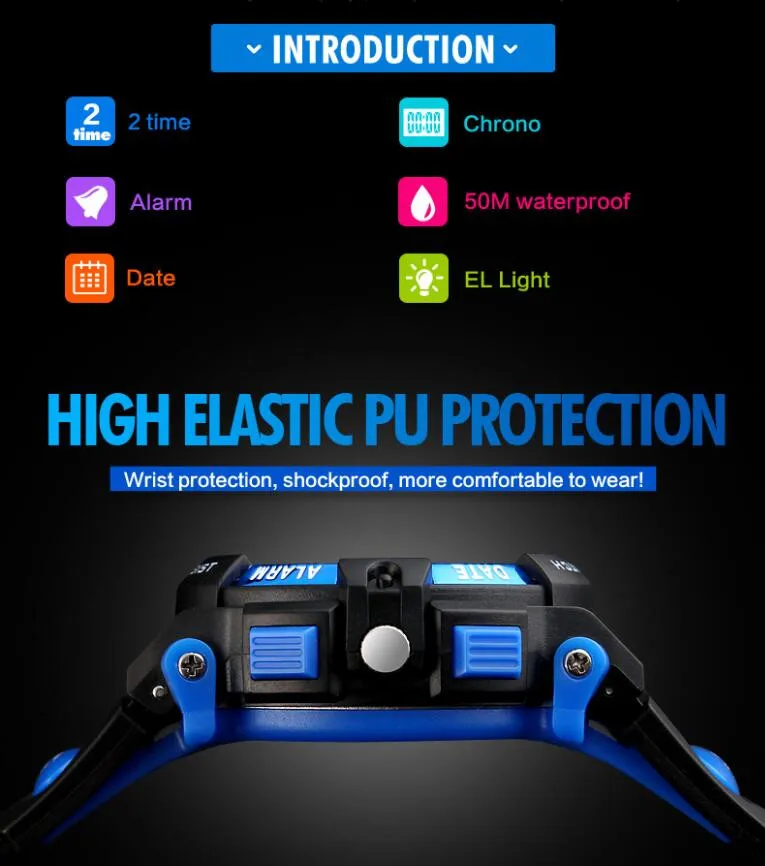 Feature:Back Light,Alarm,Water Resistant,Multiple Time Zone,Chronograph,Shock Resistant,Repeater,Stop Watch,Swim,Auto Date,LED display,Diver