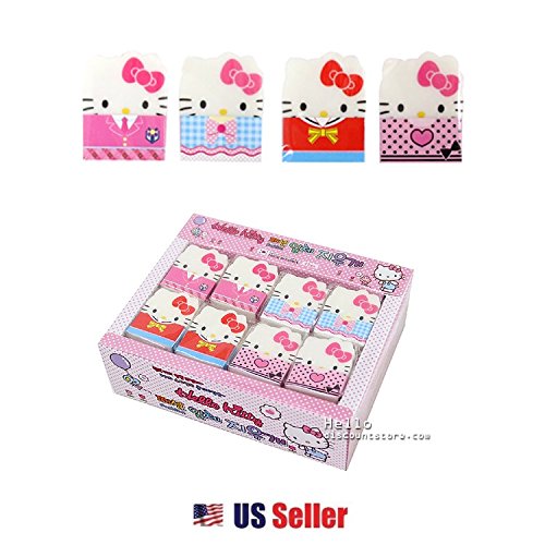 Sanrio Hello Kitty Face Die-cut Erasers Set of 4 4 fashionable Kitty erasers Good for Kitty Fans Size :H 1-1/2" x W 1" x L 1/4" Chocking Hazard : Keep away from children under 3 years.Feature