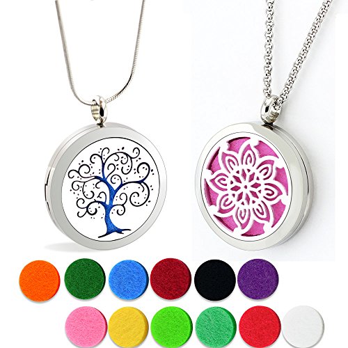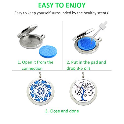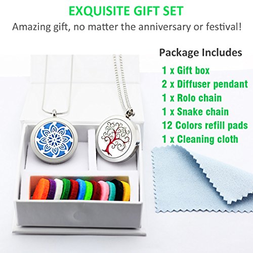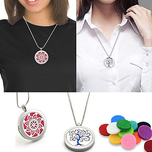 - A convenient and simple aromatherapy jewelry for you, friendly size and nice look. It is a great gift for yourself, your family or your friends. Packing includes: 1 gift box+2 locket+2 chains+12 different felt pads. Our store provides 22mm replacement felt pads.