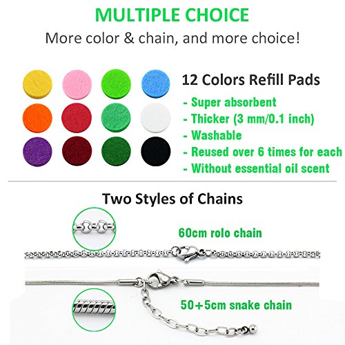 - You will get TWO diffuser Lockets and TWO types chains - 60cm Rolo chain and 50cm plus 5cm ADJUSRABLE Snake chain! 30mm Exquisite pattern diffuser with 22mm felt pads, total only 25g weight and never feel tired even for long time wearing.