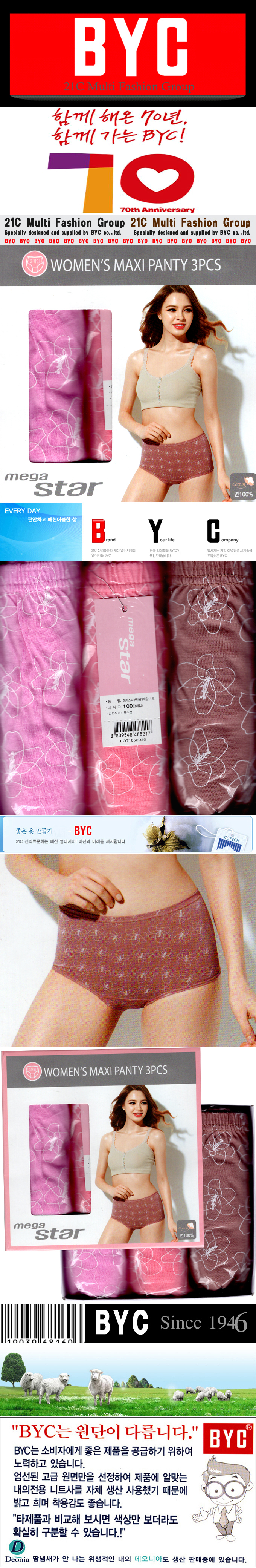 상 품 설 명  BYC 맥시 순면 삼각팬티로 BYC 은은한 전체나염의 디자인으로 유색시리즈 출시 상품 입니다