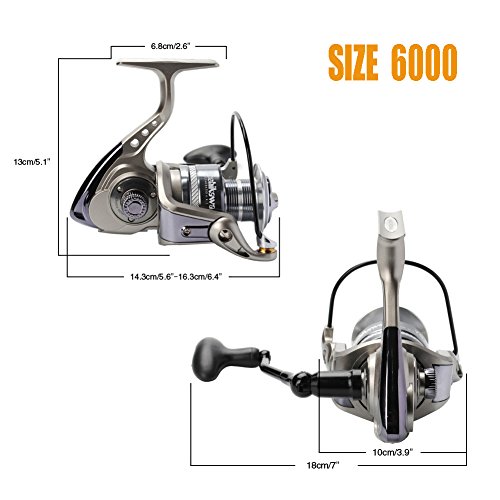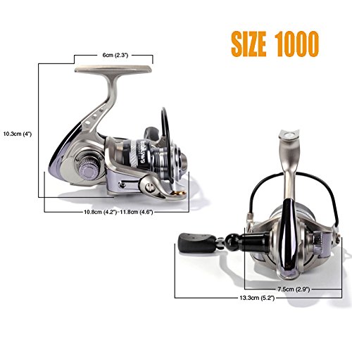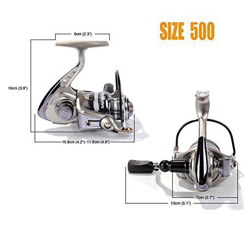 -. Feature : 30% STRONGER BODY WITH ONLY 3% HEAVIER, constructed with high power corrosion-resistant graphite 30% stronger than normal spinning adopted. This strong compact design leaves zero chance for parts to misalign and effectively blocks water and dust, to ensure the long-term performance in both freshwater and saltwater. / "BLADE-THIN" APPEALING PROFILE. A combination of strength and beauty, the reel gets a blade-thin main body thanks to the compact design and high density material. Every corner and edge is strictly crafted to ensure a eyes-catching yet centralized balanced spinning reel. / 10 + 1 HIGH STRENGTH STAINLESS BALL BEARINGS, ENHANCED STAINLESS STEEL MAIN SHAFT, provide ultra-smooth work through over the reel. It makes the casting and reeling back goes like a ghost, you cannot hear anything but see the lines floating out and coming back crazily. / CONFIDENT CAST AND RETRIEVE. The HYPER POWER DRAG with a set of excellent interlapped heat-resistant washer, helps fishers fooling different species fish around and always being in command of the battle. DOUBLE-ANODIZED ALUMINUM SPOOL is made for long and accurate casting, more than ten years abuse is expected. CNC MACHINE ALUMINUM HANDLE, delivers extremely cranking power, making retrieve more sturdy and less effort requested. / The reel is manufactured following big brand quality like Shimano and Okuma, yet maintains the affordable P.R.Ice as YOSHIKAWA always do. This WORKHORSE YG Model, Size 500, 1000 will catch you a lot of trout, panfish and bass; size 2000, 3000 for general species like bigger bass, sea tout and salmon; size bigger than 4000 would go for striper, bluefish, catfish.