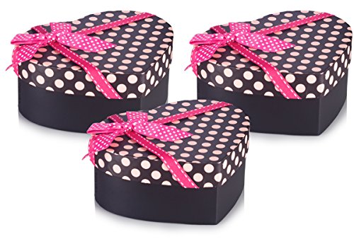 - INCLUDES : 3 - Chocolate Heart Shape Box, Polka Dots Top Design with bow.
