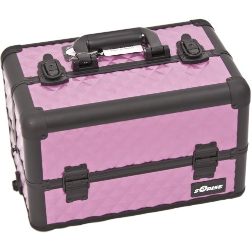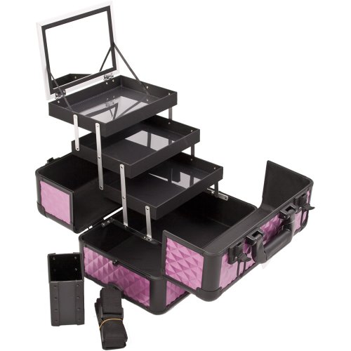 SUNRISE Makeup Professional Case E3305 Aluminum, 3 Tier Tray, Locking with Mirror, Brush Holder and Shoulder Strap, Purple Diamond