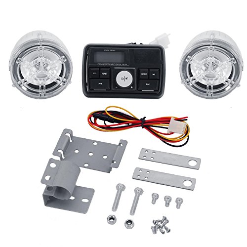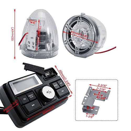 INNOGLOW LCD Bluetooth hands-free motorcycle audio kit(Main unit+2x multi-color LED Speaker) Support MP3 music from USB or SD/TF card (Clear)